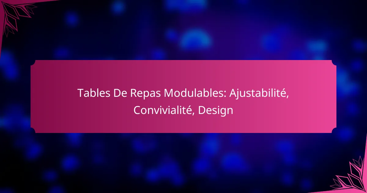 Ajuster une table de repas modulable est un processus simple qui permet de changer la taille de la table selon vos besoins. Cela peut se faire par des mécanismes intégrés ou des accessoires, offrant ainsi flexibilité et convivialité lors des repas.